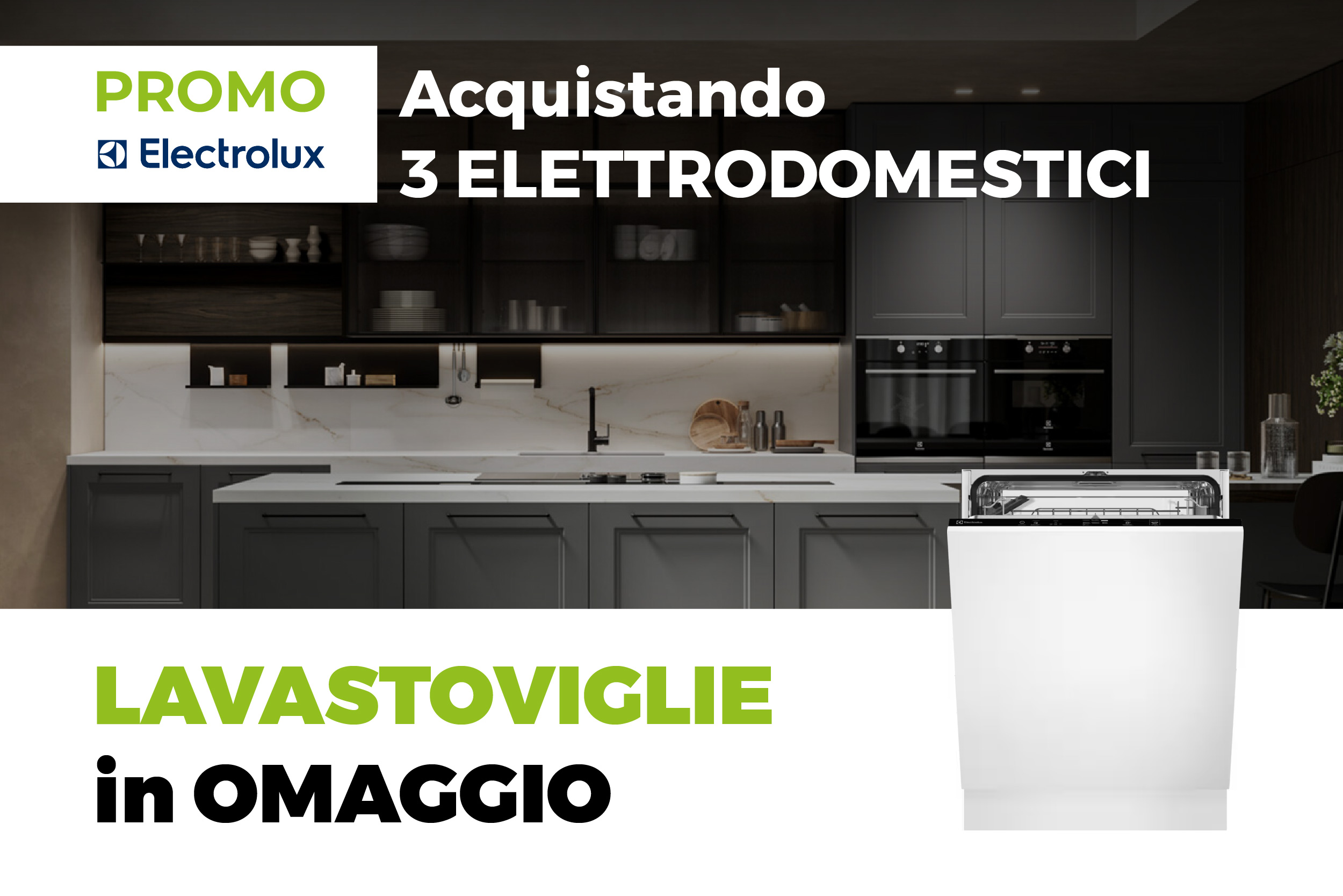 Con una cucina completa di 3 elettrodomestici ELECTROLUX (a scelta tra piano cottura, forno, frigorifero e microonde) riceverai in OMAGGIO la lavastoviglie mod. KEAD7300L.*