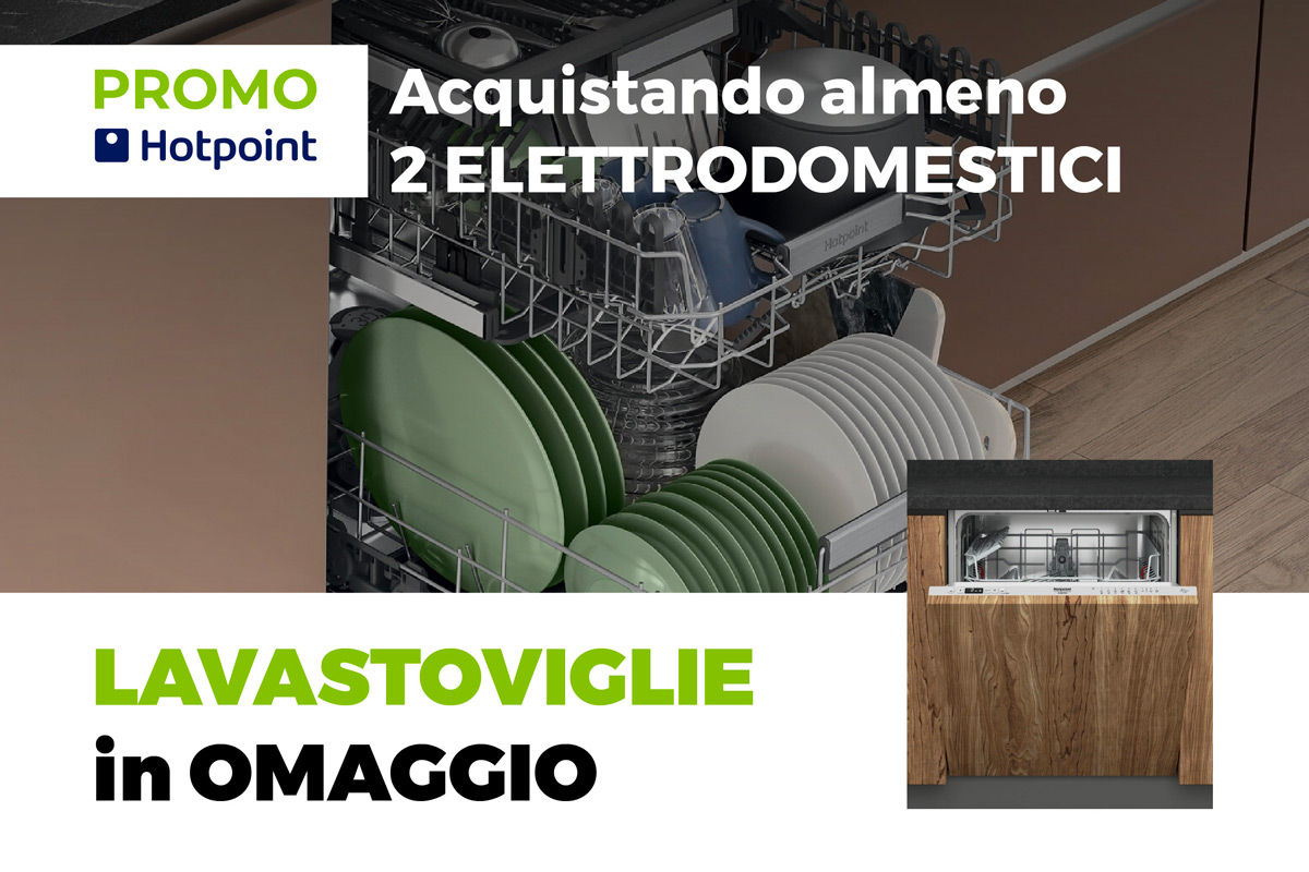 Acquistando una cucina completa di 2 elettrodomestici Hotpoint (a scelta tra piano cottura, forno, frigorifero, microonde, cantina e lavatrice incasso) riceverai in OMAGGIO la Lavastoviglie Mod. H2IHRD526S.