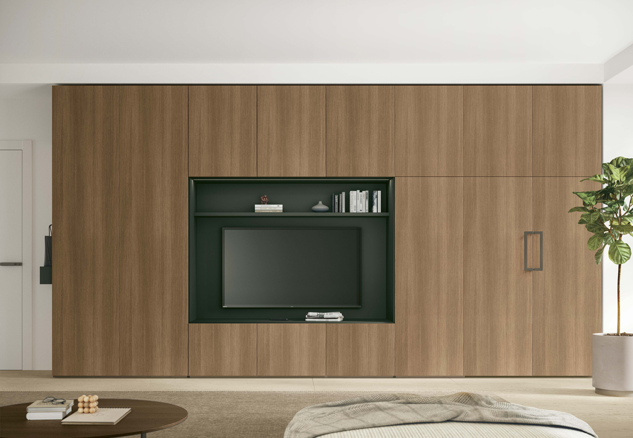 Il modello Logica Plus Unit 02, firmato Tomasella, rappresenta una soluzione modulare e dal grande impatto estetico per arredare living e zone giorno open space, grazie ad un’armadiatura che concentra più funzioni lungo un’unica parete.